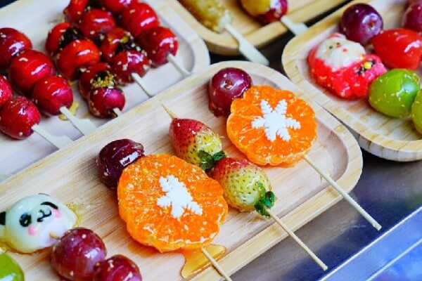 Beyond the classic fruits like haws, strawberries, and grapes, vendors are experimenting with vegetables and meats. Eggplants, cucumbers, chili peppers, and even sausages are being dipped in sweet candy coatings. The most surprising addition? Candied king crabs and hairy crabs, offering a unique fusion of sweet and savory flavors.